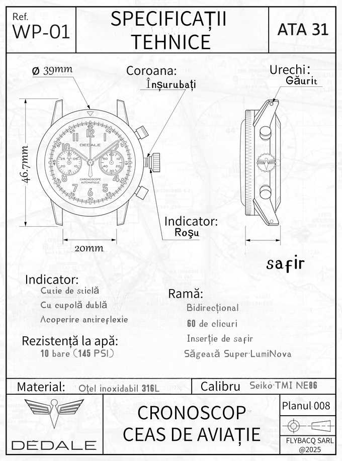 Un ceas conceput pentru piloți trebuie să fie ușor de citit, lipsit de detalii inutile, așa că a fost ales un design rafinat inspirat de orologeria anilor '40 și '50.